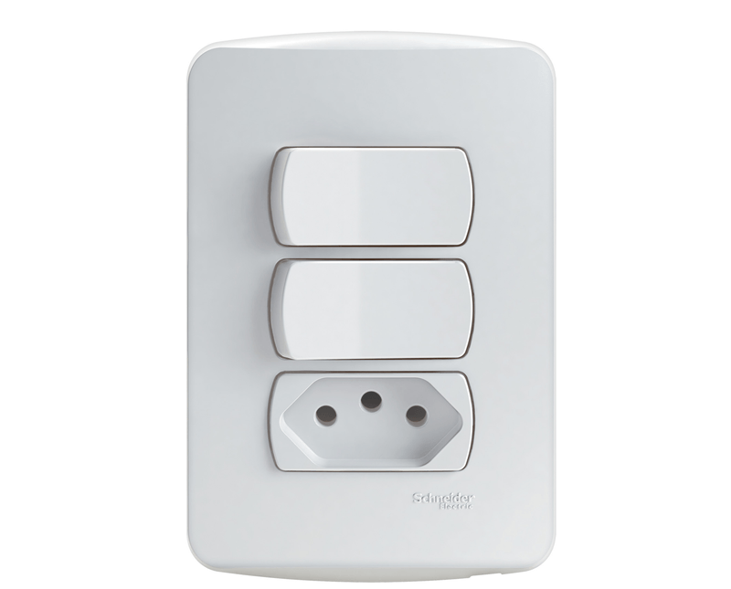 Miluz deixa sua casa ainda mais bonita e moderna em cada detalhe, Conjunto 1 interruptor simples + 1 interruptor paralelo + 1 tomada 2P+T 10A 250V branca, Miluz , - Schneider é uma linha de produtos “verde”.