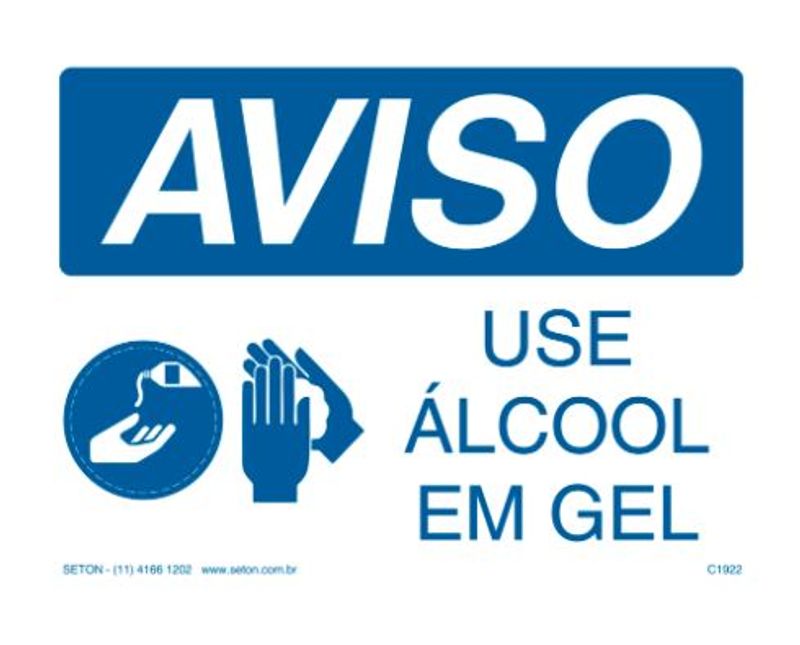 PLACA SINALIZACAO | MATERIAL: PLASTICO | IDENTIFICACAO: AVISO | IDENTIFICACAO 1: USE ALCOOL EM GEL | CORES: BRANCO/AZUL | DIMENSOES: 250X180MM | MARCA: BRADY | REFERENCIA: C1922B