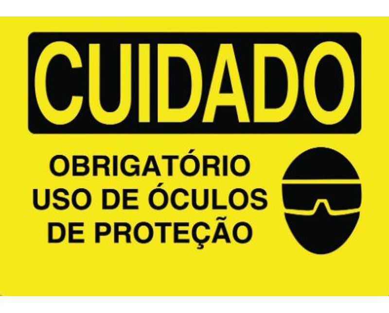 PLACA SINALIZACAO | MATERIAL: PLASTICO | IDENTIFICACAO: CUIDADO | IDENTIFICACAO 1: OBRIGATORIO USO OCULOS PROTECAO | CORES: AMARELO/PRETO | DIMENSOES: 250X180MM | MARCA: BRADY | REFERENCIA: C1113B