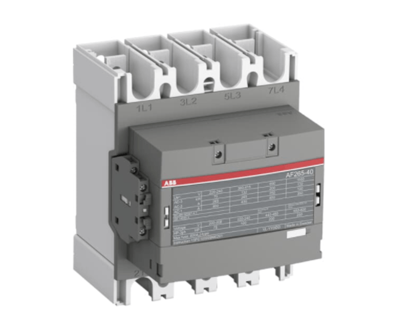 Os contatores AF de 4 polos são usados para controlar circuitos de potência de até 690 Vca e 440 Vcc. Eles são usados principalmente para controlar cargas não indutivas ou ligeiramente indutivas. Os contatores AF incluem uma interface de bobina eletrônica que aceita uma ampla tensão de controle Uc min. Uc máx. Apenas quatro bobinas cobrem tensões de controle entre 24-500 Vca ou 20-500 Vcc. Os contatores AF podem gerenciar grandes variações de tensão de controle. Uma bobina pode ser usada para diferentes tensões de controle usadas em todo o mundo, sem qualquer alteração da bobina. Os contatores AF possuem proteção contra sobretensão integrada e não requerem supressores de sobretensão adicionais. Os contatores de 4 pólos da série AF são do tipo bloco. Polos principais e blocos de contato auxiliares 4 polos principais 4NA. Blocos de contato auxiliares adicionais 1NA+1NF incorporados. Está disponível uma vasta gama de acessórios.