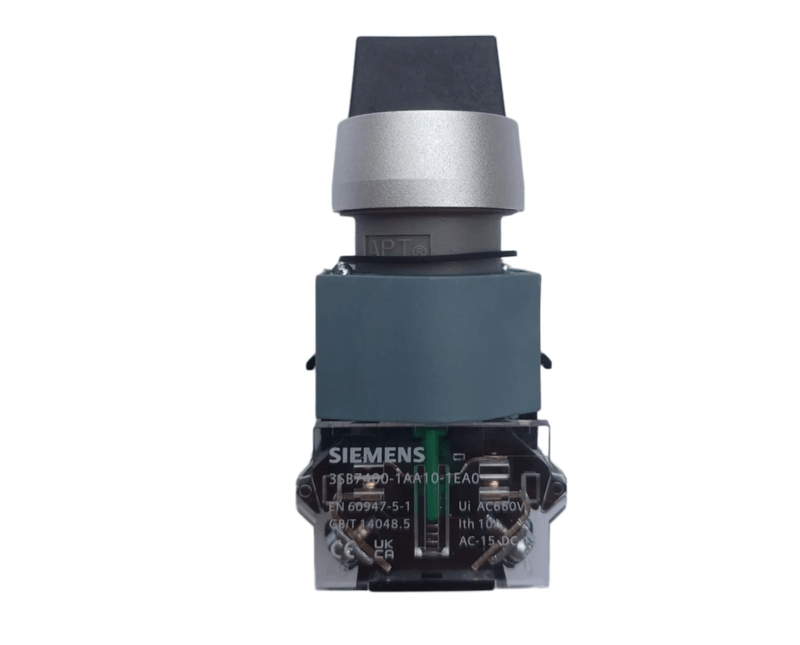 COMUTADOR COMANDO | TIPO: NAO ILUMINADO | FORMATO: KNOB | POSICOES: 3 POSICOES | FRONTAL: PLASTICO | COR: PRETA | FURACAO: 22MM | ANGULO OPERACAO: 60 GRAUS | MARCA: SIEMENS | REFERENCIA: 3SB71302AL101NA0