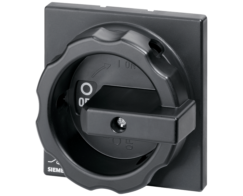 ACIONAMENTO ROTATIVO, MANÍPULO DE ACIONAMENTO PRETO, PARA FIXAÇÃO FRONTAL DO FURO CENTRAL, PARA 25A E 32A, ACESSÓRIOS PARA CHAVE PRINCIPAL E DE PARADA DE EMERGÊNCIA 3LD2.