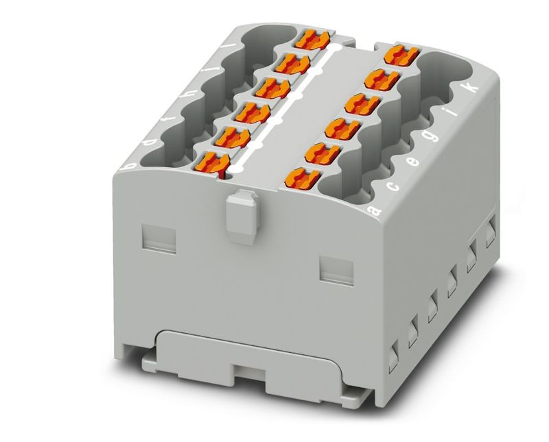 O modelo PTFI é fabricado em poliamida (nylon) na cor cinza, apresentando um perfil NS 35/15 e um número diferente de conexões, que varia de 2 a 12 em função do código de referência. Além disso, esse conector também possui uma função push in, que permite uma instalação fácil e rápida, poupando tempo e esforço.