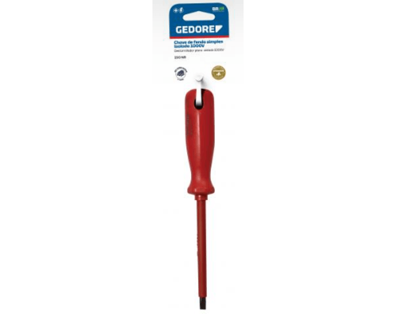 CHAVE FENDA | TIPO PONTA: FIXA | FORMATO: STANDARD | ISOLACAO SIMPLES: SIM | ISOLACAO 1000V: SIM | HOMOLOGACAO VDE: SIM | FORMA DA HASTE: CILINDRICA (PARALELA) | MATERIAL: ACO CROMO VANADIO | MATERIAL CABO: POLIMERO | DIMENSOES PONTA X HASTE (MM): 6X100MM | MARCA: GEDORE | REFERENCIA: 150NR14X4