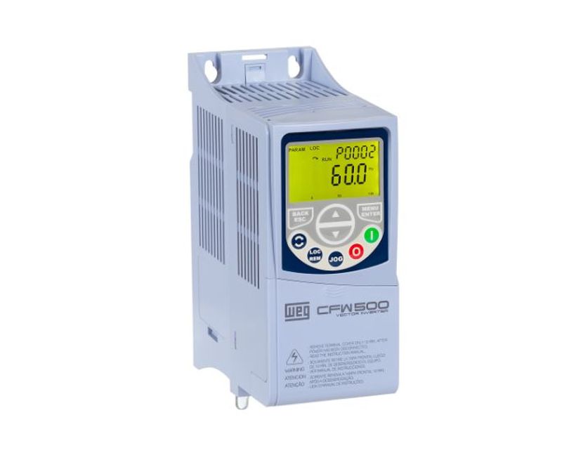 INVERSOR FREQUENCIA | NUMERO FASES: MONOFASICO | TAMANHO: A | TENSAO ALIMENTACAO: 200-240V | TIPO CORRENTE ELETRICA (ALIMENTACAO): CORRENTEALTERNADA (CA) | FREQUENCIA: 50/60HZ | CORRENTE NOMINAL SAIDA LOW OVERLOAD / NORMAL DUTY (LO): 7A | POTENCIA LOW OVERLOAD / NORMAL DUTY (LO): 1,5KW (2CV) | CLASSE PROTECAO : IP-20 | ALTURA: 189MM | LARGURA: 75MM | PROFUNDIDADE: 150MM | FILTRO ELETROMAGNETICO: SEM FILTRO RFI | MODELO: CFW500 | MARCA: WEG | REFERENCIA: CFW500A07P0S2NB20G2