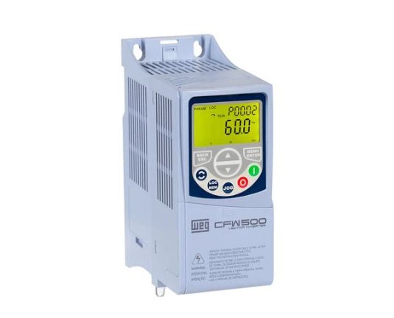 INVERSOR FREQUENCIA | NUMERO FASES: MONOFASICO | TAMANHO: A | TENSAO ALIMENTACAO: 200-240V | TIPO CORRENTE ELETRICA (ALIMENTACAO): CA | FREQUENCIA: 50/60HZ | CORRENTE NOMINAL SAIDA HIGH OVERLOAD / HEAVY DUTY (HO): 1,6A | POTENCIA HIGH OVERLOAD / HEAVY DUTY (HO): 0,25KW (0,33CV) | CLASSE PROTECAO : IP20 | PROTOCOLO: MODBUS/ PROFIBUS/ PROFINET/ CANOPEN/ DEVICENET/ ETHERNET/IP/ ETHERCAT/ BACNET | ALTURA: 189MM | LARGURA: 75MM | PROFUNDIDADE: 150MM | FILTRO ELETROMAGNETICO: SEM FILTRO RFI | MODELO: CFW500 | MARCA: WEG | REFERENCIA: CFW500A01P6S2NB20G2