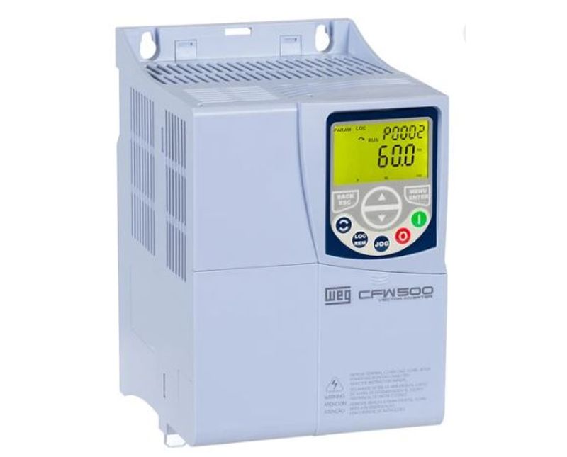 INVERSOR FREQUENCIA | NUMERO FASES: TRIFASICO | TAMANHO: C | TENSAO ALIMENTACAO: 380-480V | TIPO CORRENTE ELETRICA (ALIMENTACAO): CA | FREQUENCIA: 50/60HZ | CORRENTE NOMINAL SAIDA HIGH OVERLOAD / HEAVY DUTY (HO): 16A | POTENCIA HIGH OVERLOAD / HEAVY DUTY (HO): 7,5KW (10CV) | CLASSE PROTECAO : IP-20 | PROTOCOLO: MODBUS/ PROFIBUS/ PROFINET/ CANOPEN/ DEVICENET/ ETHERNET/IP/ ETHERCAT/ BACNET | ALTURA: 210MM | LARGURA: 135MM | PROFUNDIDADE: 165MM | FILTRO ELETROMAGNETICO: SEM FILTRO RFI | MODELO: CFW500 | MARCA: WEG | REFERENCIA: CFW500C16P0T4DB20G2
