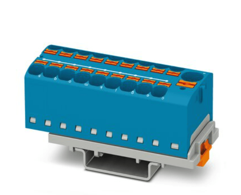 BLOCO CONECTOR PASSAGEM | MATERIAL: POLIAMIDA (NYLON) | COR: AZUL | TENSAO NOMINAL: 800V | CORRENTE: 32A | QUANTIDADE CONEXOES: 19 CONEXOES | SECAO CABO: 10MM2 | MARCA: PHOENIX CONTACT | REFERENCIA: PTFIX10184NS35BU