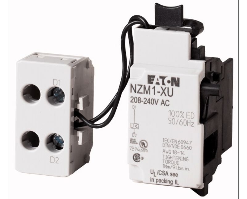 O produto NZM1XU110130AC da marca Eaton é uma bobina de disjuntor de dispositivo de mínima tensão, com tensão nominal de 110-130V e frequência de 50/60Hz.