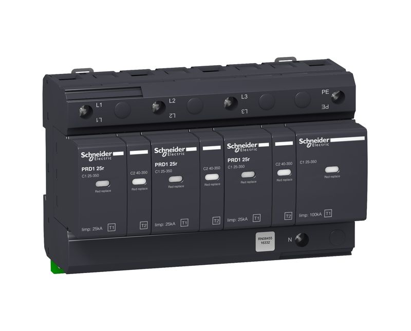 DISPOSITIVO PROTECAO CONTRA SURTO (DPS) | CLASSE TENSAO: CLASSES I/II | NUMERO POLOS: 3 POLOS | TENSAO NOMINAL: 230/400 VCA | TENSAO MAXIMA OPERACAO: 350 VCC | CAPACIDADE RUPTURA: 25 KA | GRAU PROTECAO: IP-20 / IP-40 | COR: CINZA | MODELO: PRD1 25R | MARCA: SCHNEIDER | REFERENCIA: 16332