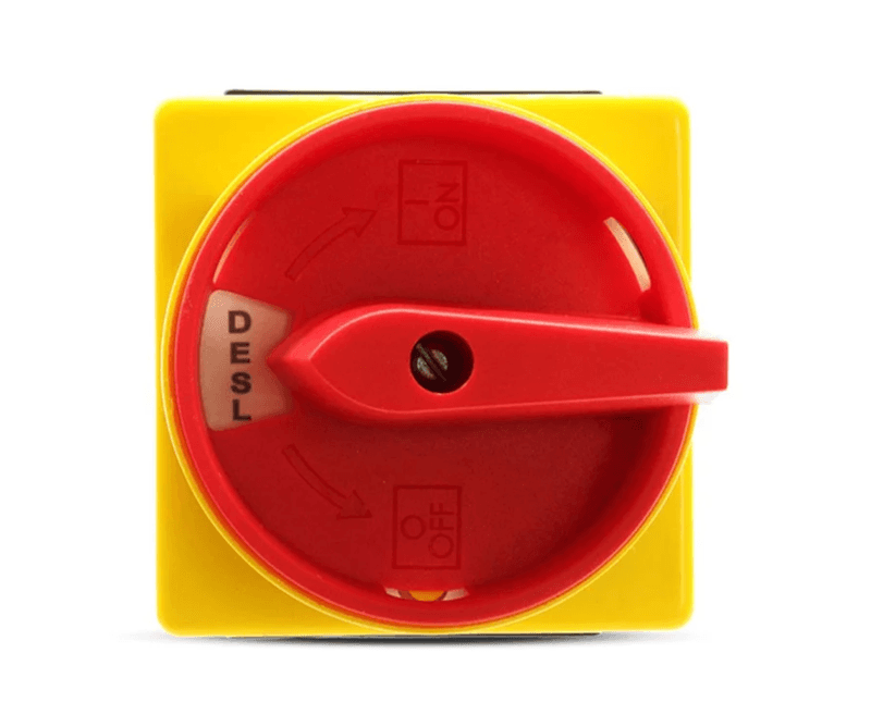 - Chave de contato termoplástica tripolar LB 225 B33 YR Alta corrente liga/desliga 25A 690Vac com alça frontal amarela e botão vermelho com 3 posições para fixação de fechadura e montagem de Chave Tipo High;