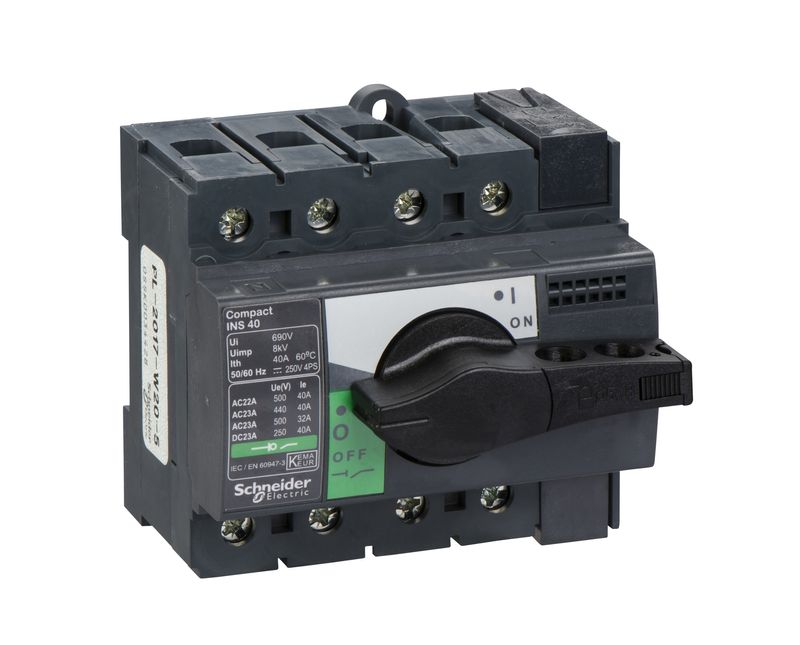 Com capacidade de ruptura entre 15 e 75KA, este interruptor de quatro pólos pode lidar com correntes de até 40A e tensões de 690VCA. O modelo compacto INS da Schneider é projetado para uma conexão fácil e segura, garantindo uma instalação livre de estresse.