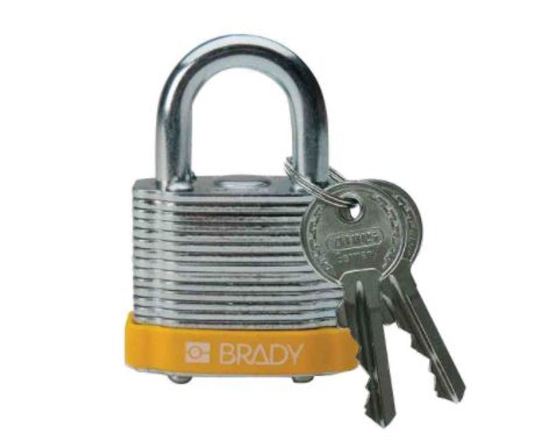 CADEADO | MATERIAL CORPO: ACO CARBONO LAMINADO | COMPRIMENTO CORPO: 35,6MM | TAMANHO HASTE: 19MM | MATERIAL HASTE: ACO CARBONO | COR: AMARELA | CHAVE: 2 CHAVES | MARCA: BRADY | REFERENCIA: 99512