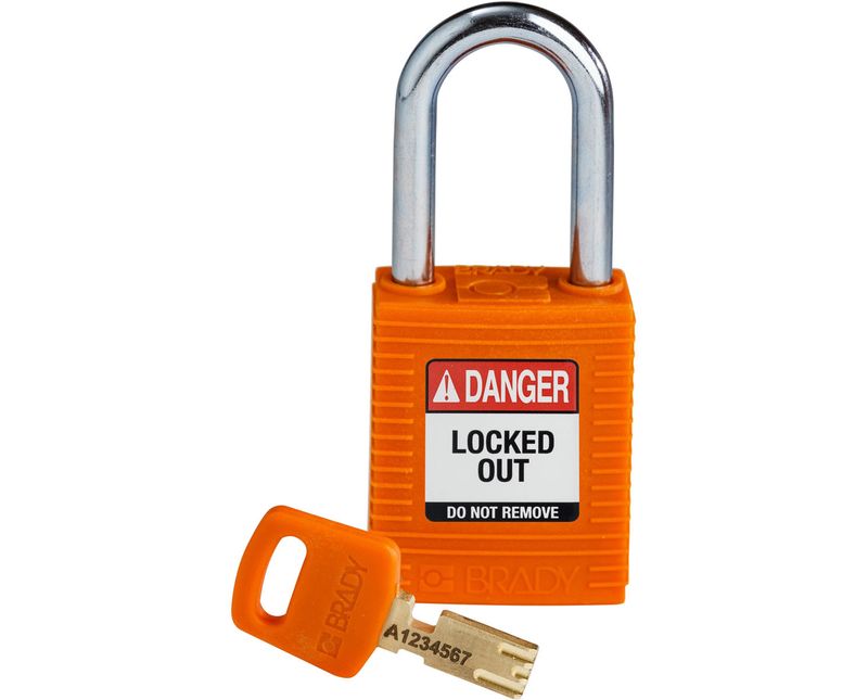 CADEADO | MATERIAL CORPO: PLASTICO | COMPRIMENTO CORPO: 44,45MM | TAMANHO HASTE: 38MM | MATERIAL HASTE: ACO CARBONO | COR: LARANJA | CHAVE: SEGREDO IGUAL | MARCA: BRADY | REFERENCIA: 99577PM