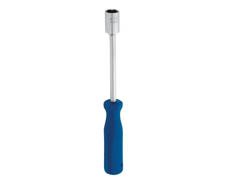 Haste em Aço Gedore-Vanadium e cabo em polímero na cor azul padrão Gedore. Haste com acabamento niquelado e cromado. Chave com perfil de encaixe para parafuso com sextavado externo e cabo ergonômico. Indicada para eletro-eletrônica e mecânica leve, principalmente em locais de difícil acesso. Dicas de segurança: " Respeite as normas profissionais de segurança e o uso dos EPIs. " Sempre utilize a chave canhão com o perfil de encaixe e a bitola correspondente a bitola do parafuso ou porca, para que não haja folga e não danifique a chave e o fixador. " Respeite o limite de torque estabelecido em norma para cada bitola da chave canhão. " Não exponha a chave canhão ao calor excessivo, para não comprometer as características do produto. " Não golpeie a chave canhão. " Não altere a forma original da chave canhão. " Não exponha / armazene a chave canhão em ambientes ácidos, úmidos ou salinos. " Após o uso limpe visando prolongar a vida útil e garantir o bom funcionamento da chave canhão.