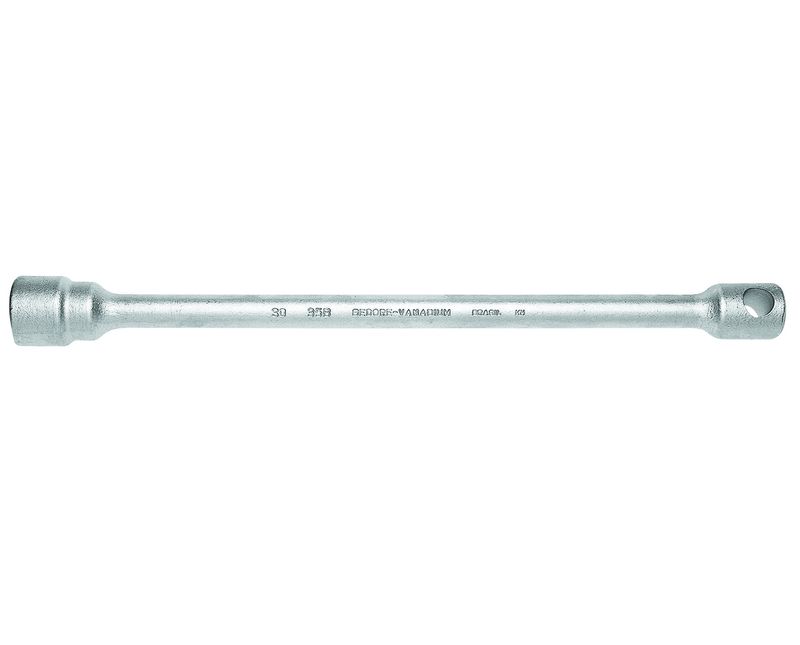 Aço Gedore-Vanadium. Acabamento niquelado. Chave longa com perfil de encaixe sextavado interno. Seu comprimento possibilita o acesso aos parafusos da roda interna de caminhões e ônibus. Indicada para utilização com os Manípulos refs. 26 d / 35 d - 13, 27 d / 35 d - 19 e 27 d / 35 d - 21, de acordo com o modelo, que deverá ser adquirido separadamente. Dicas de segurança: " Respeite as normas profissionais de segurança e o uso dos EPIs. " Sempre utilize a chave de roda com a bitola correspondente a bitola do parafuso ou porca, para que não haja folga e não danifique a chave e o fixador. " Respeite o limite de torque estabelecido para cada bitola da chave de roda. " Não exponha a chave de roda ao calor excessivo, para não comprometer as características do produto. " Não utilize tubos ou extensões para obter maior torque. " Não golpeie a chave de roda. " Não altere a forma original da chave de roda. " Não exponha / armazene a chave de roda em ambientes ácidos, úmidos ou salinos. " Após o uso limpe visando prolongar a vida útil e garantir o bom funcionamento da chave.