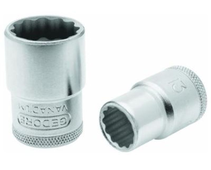 Aço Gedore-Vanadium. Acabamento niquelado e cromado. Para trabalhar com acessórios manuais com encaixe quadrado 12,7 mm (1/2 ), conforme DIN 3120 - C 12.5, ISO 1174. Indicado para parafusos e porcas com perfil de encaixe sextavado externo. Dicas de segurança: " Respeite as normas profissionais de segurança e o uso dos EPIs. " Sempre utilize o soquete com o perfil de encaixe e a bitola correspondente a bitola do parafuso ou porca, para que não haja folga e não danifique o soquete e o fixador. " Respeite o limite de torque estabelecido em norma para cada bitola do soquete estriado. " Não exponha o soquete estriado ao calor excessivo, para não comprometer as características do produto. " Não golpeie o soquete estriado. " Não altere a forma original do soquete estriado. " Não utilize em parafusadeiras. " Não exponha / armazene o soquete estriado em ambientes ácidos, úmidos ou salinos. " Após o uso limpe visando prolongar a vida útil e garantir o bom funcionamento do soquete.
