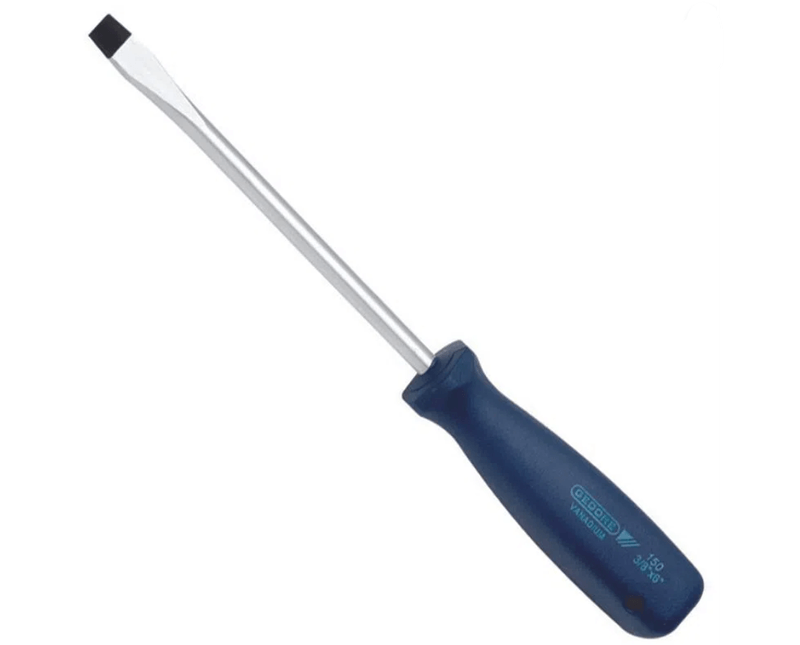 CHAVE FENDA | TIPO PONTA: FIXA | FORMATO: STANDARD | ISOLACAO SIMPLES: SIM | FORMA DA HASTE: REDONDA | MATERIAL: ACO CROMO VANADIO | TRATAMENTO SUPERFICIAL: NIQUELADO / CROMADO | MATERIAL CABO: POLIPROPILENO | ESPESSURA PONTA (MM): 1,6MM | LARGURA PONTA (MM): 8MM | COMPRIMENTO HASTE (MM): 254MM | COMPRIMENTO TOTAL (MM): 374MM | DIMENSOES PONTA X HASTE (POLEGADA): 5/16X10" | COR CABO: AZUL | PREPARADA P/ TRABALHO EM ALTURA: SIM | MODELO: 150 | MARCA: GEDORE | REFERENCIA: 150516X10