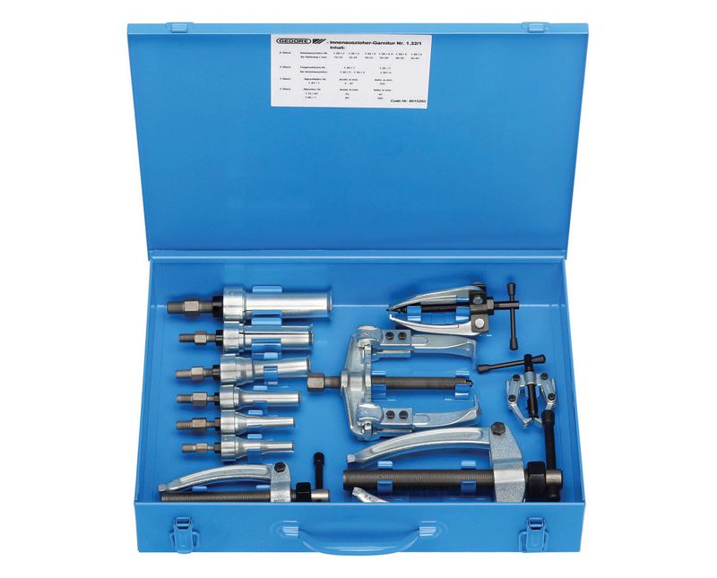 Jogo de extratores internos e externos, extrator tipo mandril, sacapolias, sacaprisioneiro e suporte para exteração interna. Para extração segura de rolamentos de esferas, buchas e anéis extremamente justos. Acondicionado em estojo metálico com pintura na cor azul padrão Gedore, com dimensões externas: mm (comprimento x altura x largura). Dicas de segurança: " Respeite as normas profissionais de segurança e o uso dos EPIs. " Sempre utilize os extratores internos e externos correspondente ao diâmetro da rolamento a ser extraído, para que não danifique o rolamento e a garra. " Posicione adequadamente o extrator interno e externo, isto facilitará a extração e tornará a operação mais segura. " Respeite o limite de carga operacional estabelecido para cada extrator interno e externo. " Não exponha o jogo de extratores internos e externos ao calor excessivo, para não comprometer as características do produto. " Não utilize tubos ou extensões para obter maior torque. " Não golpeie o jogo de extratores internos e externos. " Não altere a forma original do jogo de extratores internos e externos. " Não exponha / armazene o jogo de extratores internos e externos em ambientes ácidos, úmidos ou salinos. " Após o uso limpe visando prolongar a vida útil e garantir o bom funcionamento do jogo de extratores internos e externos.