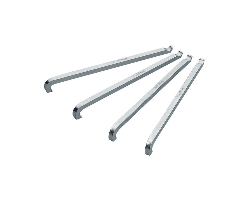 Aço especial. Acabamento zincado e escurecido. Para utilização com o Sacarrolamento fuso e porca refs. 1.29/1, 1.29/3, 1.29/4 e 1.29/5, a ser adquirido separadamente, de acordo com o modelo. Fornecimento em 4 peças. Dicas de segurança: " Respeite as normas profissionais de segurança e o uso dos EPIs. " Sempre utilize o jogo de garras para sacarrolamento correspondente a norma do rolamento a ser extraído, para que não danifique o rolamento e a garra. " Posicione adequadamente o jogo de garras para sacarrolamento, isto facilitará a extração e tornará a operação mais segura. " Respeite o limite de carga operacional estabelecido para cada jogo de garras para sacarrolamento. " Não exponha o jogo de garras para sacarrolamento ao calor excessivo, para não comprometer as características do produto. " Não utilize tubos ou extensões para obter maior torque. " Não golpeie o jogo de garras para sacarrolamentoa. " Não altere a forma original do jogo de garras para sacarrolamento. " Não exponha / armazene o jogo de garras para sacarrolamento em ambientes ácidos, úmidos ou salinos. " Após o uso limpe visando prolongar a vida útil e garantir o bom funcionamento do jogo de garras para sacarrolamento.