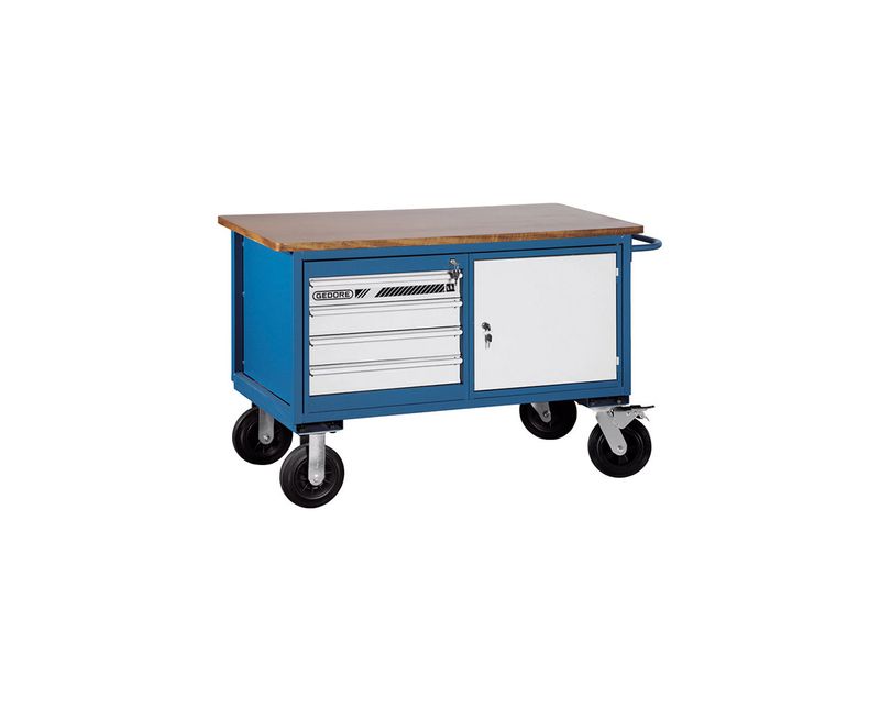 CARRO FERRAMENTA | TIPO: BANCADA | MATERIAL ESTRUTURA: ACO CARBONO | TRATAMENTO: PINTURA | MATERIAL TAMPO: MADEIRA | PORTA: 1 PORTA | GAVETA: SIM | NUMERO GAVETAS: 4 GAVETAS | COR: AZUL | C/ FREIO: NAO | ALTURA (MM): 840MM | LARGURA (MM): 1355MM | PROFUNDIDADE (MM): 610MM | MARCA: GEDORE | REFERENCIA: 63340