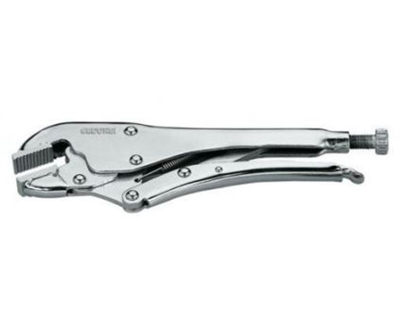 Aço especial. Acabamento niquelado e cromado. Possui mordentes dentadas para fixação paralela. Dicas de segurança: " Respeite as normas profissionais de segurança e o uso dos EPIs. " Sempre utilize o alicate de pressão com a aplicação correspondente a dimensão da peça a ser pega, para que obtenha o desempenho desejado. " Não exponha o alicate ao calor excessivo, para não comprometer as características do produto. " Não utilize tubos ou extensões para prolongar o comprimento do alicate de pressão com mordentes planos dentados. " Não golpeie o alicate de pressão com mordentes planos dentados. " Não altere a forma original do alicate de pressão com mordentes planos dentados. " Não exponha / armazene o alicate de pressão com mordentes planos dentados em ambientes ácidos, úmidos ou salinos. " Após o uso limpe visando prolongar a vida útil e garantir o bom funcionamento do alicate de pressão.