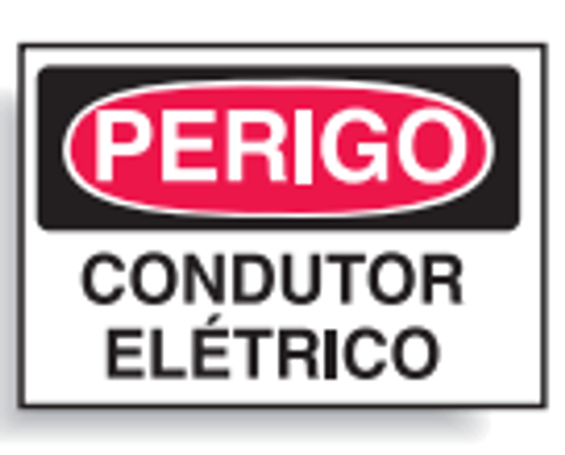 PLACA SINALIZACAO | MATERIAL: POLICLORETO POLIVINILA (PVC) | ACABAMENTO: VINIL AUTO ADESIVO | IDENTIFICACAO 1: PERIGO | IDENTIFICACAO 2: CONDUTOR ELETRICO | CORES: BRANCO/VERMELHO/PRETO | IMPRESSAO: PRETA | DIMENSOES: 350X250MM | MARCA: BRADY | REFERENCIA: C0077E