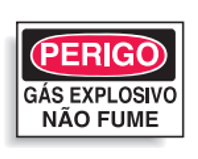PLACA SINALIZACAO | MATERIAL: ALUMINIO | ACABAMENTO: VINIL AUTO ADESIVO | IDENTIFICACAO 1: PERIGO | IDENTIFICACAO 2: GAS EXPLOSIVO NAO FUME | CORES: BRANCO/VERMELHO/PRETO | IMPRESSAO: PRETA | DIMENSOES: 250X180MM | MARCA: BRADY | REFERENCIA: C1054C