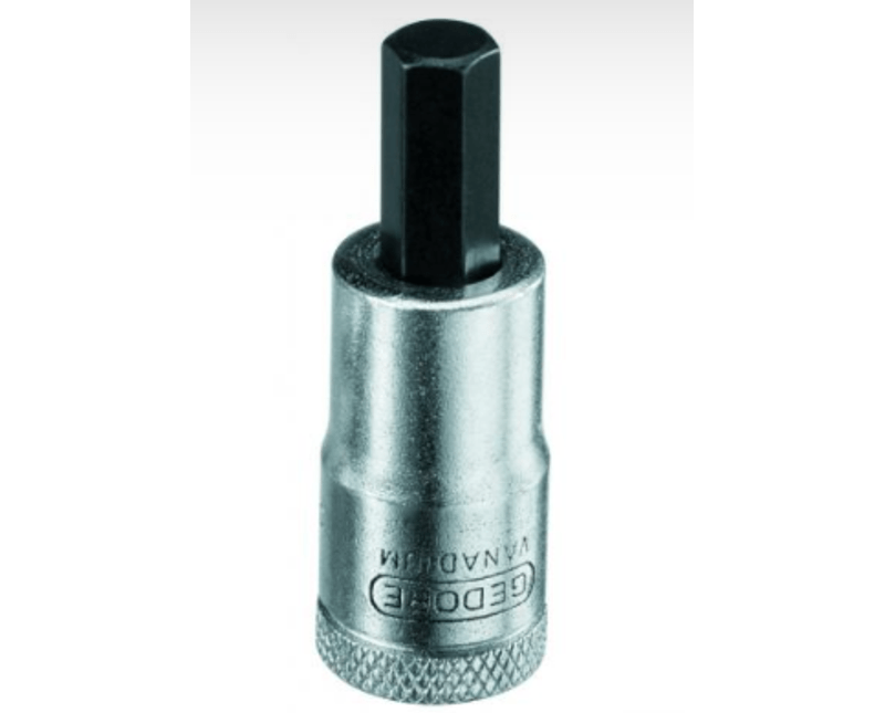 Aço Gedore-Vanadium. Soquete com acabamento niquelado e cromado, com ponteira escurecida. Para trabalhar com acessórios manuais com encaixe quadrado 9,52 mm (3/8 ), conforme DIN 3120 - C 10, ISO 1174. Indicada para parafusos com perfil de encaixe sextavado interno. Dicas de segurança: " Respeite as normas profissionais de segurança e o uso dos EPIs. " Sempre utilize a chave soquete com o perfil de encaixe e a bitola correspondente a bitola do parafuso, para que não haja folga e não danifique a chave soquete e o fixador. " Respeite o limite de torque estabelecido em norma para cada bitola da chave soquete hexagonal. " Não exponha a chave soquete hexagonal ao calor excessivo, para não comprometer as características do produto. " Não golpeie a chave soquete hexagonal. " Não altere a forma original da chave soquete hexagonal. " Não utilize em parafusadeiras. " Não exponha / armazene a chave soquete hexagonal em ambientes ácidos, úmidos ou salinos. " Após o uso limpe visando prolongar a vida útil e garantir o bom funcionamento da chave soquete.