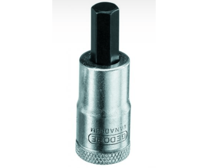 Aço Gedore-Vanadium. Soquete com acabamento niquelado e cromado, com ponteira escurecida. Para trabalhar com acessórios manuais com encaixe quadrado 9,52 mm (3/8 ), conforme DIN 3120 - C 10, ISO 1174. Indicada para parafusos com perfil de encaixe sextavado interno. Dicas de segurança: " Respeite as normas profissionais de segurança e o uso dos EPIs. " Sempre utilize a chave soquete com o perfil de encaixe e a bitola correspondente a bitola do parafuso, para que não haja folga e não danifique a chave soquete e o fixador. " Respeite o limite de torque estabelecido em norma para cada bitola da chave soquete hexagonal. " Não exponha a chave soquete hexagonal ao calor excessivo, para não comprometer as características do produto. " Não golpeie a chave soquete hexagonal. " Não altere a forma original da chave soquete hexagonal. " Não utilize em parafusadeiras. " Não exponha / armazene a chave soquete hexagonal em ambientes ácidos, úmidos ou salinos. " Após o uso limpe visando prolongar a vida útil e garantir o bom funcionamento da chave soquete.