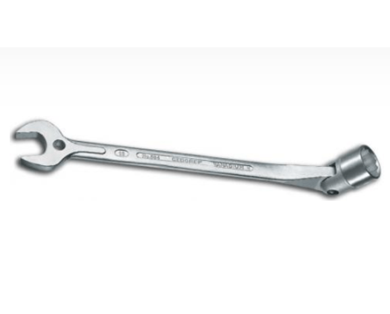 Aço Gedore-Vanadium. Acabamento niquelado e cromado, pontas polidas. Um lado boca, o outro Unit Drive. Forma articulada proporciona grande amplitude de rotação. Medidas diferentes em cada extremidade e furo auxiliar para adaptação de Manípulo ref. 26 D ou 26 RS, de acordo com o modelo, que são comercializados separadamente. Dicas de segurança: " Respeite as normas profissionais de segurança e o uso dos EPIs. " Sempre utilize a chave com a bitola correspondente a bitola do parafuso ou porca, para que não haja folga e não danifique a chave e o fixador. " Use a chave perpendicular ao eixo do parafuso e/ou porca. Isto aumentará a vida útil da chave combinada articulada e tornará a operação mais segura. " Respeite o limite de torque estabelecido em norma para cada bitola da chave combinada articulada. " Não exponha a chave combinada articulada ao calor excessivo, para não comprometer as características do produto. " Não utilize tubos ou extensões para obter maior torque. " Não golpeie a chave combinada articulada. " Não altere a forma original da chave combinada articulada. " Não exponha / armazene a chave combinada articulada em ambientes ácidos, úmidos ou salinos. " Após o uso limpe visando prolongar a vida útil e garantir o bom funcionamento da chave.