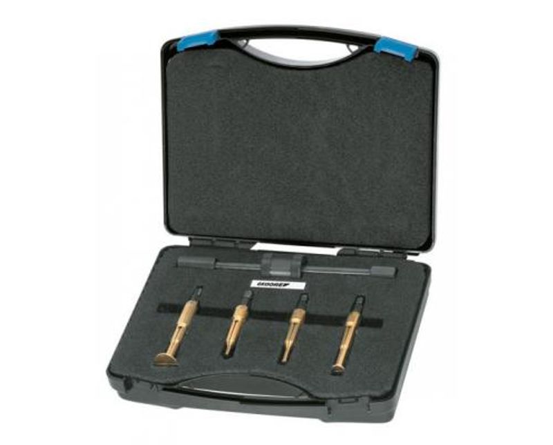 Jogo de Garras para extração externa com base plana, indicados para extração de rolamentos com diâmetro interno de 5 à 36 mm. Acondicionado em maleta plástica com berço. Dimensões externas da maleta: mm (comprimento x altura x largura). Dicas de segurança: " Respeite as normas profissionais de segurança e o uso dos EPIs. " Sempre utilize as garras para extração interna correspondente ao diâmetro da rolamento a ser extraído, para que não danifique o rolamento e a garra. " Posicione adequadamente a garra para extração interna, isto facilitará a extração e tornará a operação mais segura. " Respeite o limite de carga operacional estabelecido para cada garra para extração interna. " Não exponha as garras para extração interna ao calor excessivo, para não comprometer as características do produto. " Não utilize tubos ou extensões para obter maior torque. " Não golpeie o jogo de garras para extração interna com base plana. " Não altere a forma original do jogo de garras para extração interna com base plana. " Não exponha / armazene o jogo de garras para extração interna com base plana em ambientes ácidos, úmidos ou salinos. " Após o uso limpe visando prolongar a vida útil e garantir o bom funcionamento do jogo de garras para extração interna com base plana.