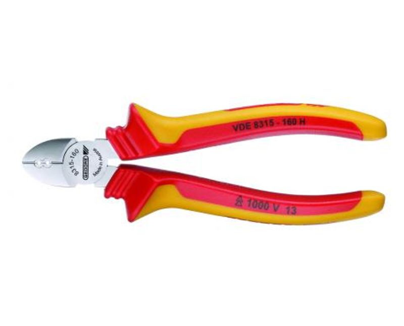ALICATE CORTE | TIPO: DIAGONAL | MATERIAL: ACO CROMO VANADIO | TRATAMENTO SUPERFICIAL: CROMADO POLIDO | CABO: PLASTIFICADO | ISOLACAO: 1000 V | ARTICULACAO: SEM MOLA | TRAVA: SEM TRAVA | COMPRIMENTO: 6.1/2" | MARCA: GEDORE | REFERENCIA: VDE8315160H