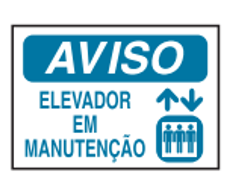 PLACA SINALIZACAO | MATERIAL: POLICLORETO POLIVINILA (PVC) | ACABAMENTO: VINIL AUTO ADESIVO | IDENTIFICACAO 1: AVISO | IDENTIFICACAO 2: ELEVADOR EM MANUTENCAO | CORES: BRANCA/AZUL | IMPRESSAO: AZUL | DIMENSOES: 350X250MM | MARCA: BRADY | REFERENCIA: C1864E