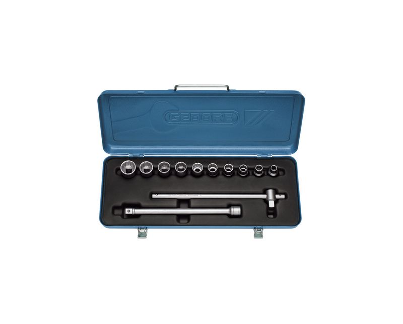 Fornecido em estojo metálico, com acabamento em pintura na cor azul padrão Gedore e berço em polímero. Dimensões externas do estojo: 436,5 x 48,6 x 172 mm (comprimento x altura x largura). Dicas de segurança: " Respeite as normas profissionais de segurança e o uso dos EPIs. " Sempre utilize o soquete com o perfil de encaixe e a bitola correspondente a bitola do parafuso ou porca, para que não haja folga e não danifique o soquete e o fixador. " Respeite o limite de torque estabelecido em norma para cada bitola do soquete e para cada acessório. " Não exponha os soquetes e os acessórios ao calor excessivo, para não comprometer as características do produto. " Não golpeie os soquetes e os acessórios. " Não altere a forma original dos soquetes e os acessórios. " Não utilize em parafusadeiras. " Não exponha / armazene os soquetes e os acessórios em ambientes ácidos, úmidos ou salinos. " Após o uso limpe visando prolongar a vida útil e garantir o bom funcionamento dos soquetes e os acessórios.