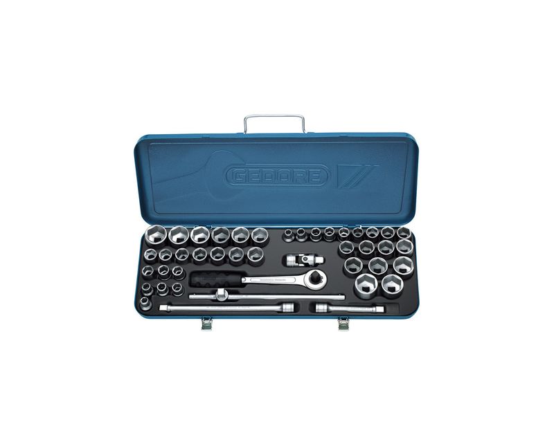 Fornecido em estojo metálico, com acabamento em pintura na cor azul padrão Gedore e berço em polímero. Dimensões externas do estojo: 525,5 x 59,3 x 193 mm (comprimento x altura x largura). Dicas de segurança: " Respeite as normas profissionais de segurança e o uso dos EPIs. " Sempre utilize o soquete com o perfil de encaixe e a bitola correspondente a bitola do parafuso ou porca, para que não haja folga e não danifique o soquete e o fixador. " Respeite o limite de torque estabelecido em norma para cada bitola do soquete e para cada acessório. " Não exponha os soquetes e os acessórios ao calor excessivo, para não comprometer as características do produto. " Não golpeie os soquetes e os acessórios. " Não altere a forma original dos soquetes e os acessórios. " Não utilize em parafusadeiras. " Não exponha / armazene os soquetes e os acessórios em ambientes ácidos, úmidos ou salinos. " Após o uso limpe visando prolongar a vida útil e garantir o bom funcionamento dos soquetes e os acessórios.