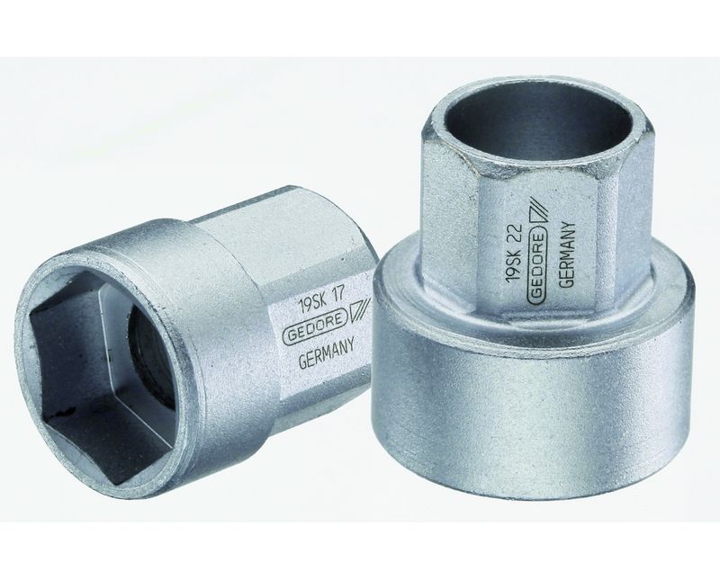 ADAPTADOR SOQUETE (PORTA SOQUETE) | TIPO: SIMPLES | FORMATO: SEXTAVADO | MATERIAL: ACO CROMO VANADIO | TRATAMENTO SUPERFICIAL: NIQUELADO / CROMADO / POLIDO | ENCAIXE SOQUETE: 17MM | ENCAIXE FERRAMENTA: 1/2" | COMPRIMENTO: 27MM | MARCA: GEDORE | REFERENCIA: 19SK17MM