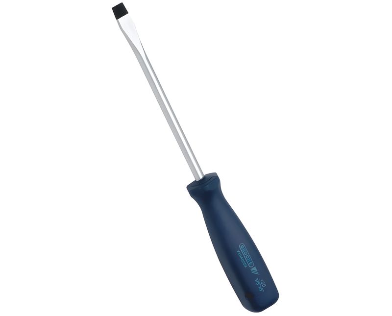 CHAVE FENDA | TIPO PONTA: FIXA | FORMATO: STANDARD | ISOLACAO SIMPLES: SIM | FORMA DA HASTE: REDONDA | MATERIAL: ACO CROMO VANADIO | TRATAMENTO SUPERFICIAL: NIQUELADO / CROMADO | MATERIAL CABO: POLIPROPILENO | ESPESSURA PONTA (MM): 1,6MM | LARGURA PONTA (MM): 8MM | COMPRIMENTO HASTE (MM): 100MM | COMPRIMENTO TOTAL (MM): 220MM | DIMENSOES PONTA X HASTE (POLEGADA): 5/16X4" | DIMENSOES PONTA X HASTE (MM): 8X100MM | COR CABO: AZUL | MODELO: 150 | MARCA: GEDORE | REFERENCIA: 150516X4