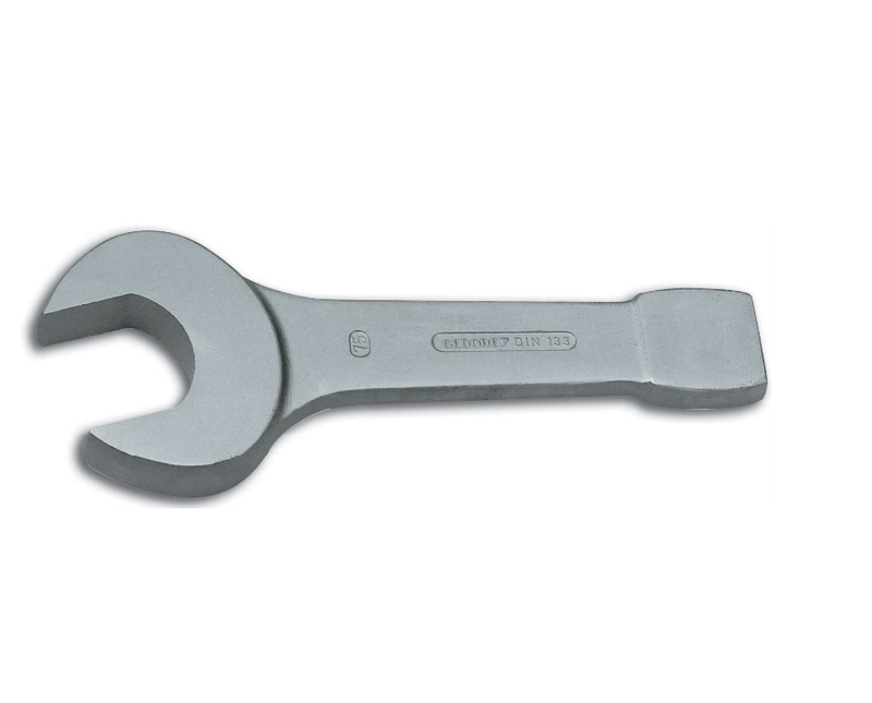 Aço especial Gedore. Acabamento escurecido. Maçalote para bater na extremidade do cabo, com a utilização de marretas ou martelos. Ideal para atividades pesadas e condições extremas. Excelente qualidade, adequada para uso universal. Dicas de segurança: " Respeite as normas profissionais de segurança e o uso dos EPIs. " Sempre utilize a chave com a bitola correspondente a bitola do parafuso ou porca, para que não haja folga e não danifique a chave e o fixador. " Use a chave perpendicular ao eixo do parafuso e/ou porca. Isto aumentará a vida útil da chave fixa de bater e tornará a operação mais segura. " Respeite o limite de torque estabelecido em norma para cada bitola da chave fixa de bater. " Não exponha a chave fixa de bater ao calor excessivo, para não comprometer as características do produto. " Não utilize tubos ou extensões para obter maior torque. " Golpeie somente o maçalote localizado na extremidade do cabo da chave fixa de bater. " Não altere a forma original da chave fixa de bater. " Não exponha / armazene a chave fixa de bater em ambientes ácidos, úmidos ou salinos. " Após o uso limpe visando prolongar a vida útil e garantir o bom funcionamento da chave. " Recomenda-se a utilização da chave estrela de bater sempre que possível, pois ela possui seis pontos de contato com a cabeça do parafuso e/ou porca, permitindo uma melhor distribuição da força aplicada sobre o parafuso ao ser golpeada. A chave fixa de bater é indicada apenas quando não houver espaço físico para trabalhar com a chave estrela de bater.