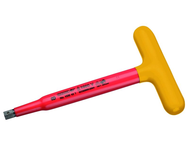 CHAVE SEXTAVADA (ALLEN) CABO T | MATERIAL: ACO CROMO VANADIO | TRATAMENTO SUPERFICIAL: NIQUELADO / CROMADO | MATERIAL CABO: COMPOSTO TERMOPLASTICO | ISOLACAO: POLIMERO ANTI CHAMAS | ISOLACAO 1000V: C/ISOLACAO | TAMANHO PONTA (MM): 10MM | COMPRIMENTO TOTAL: 200MM | COR CABO: AMARELA VERMELHA | HOMOLOGACAO VDE: C/HOMOLOGACAO | NORMA: NR 10 | MARCA: GEDORE | REFERENCIA: V42T10