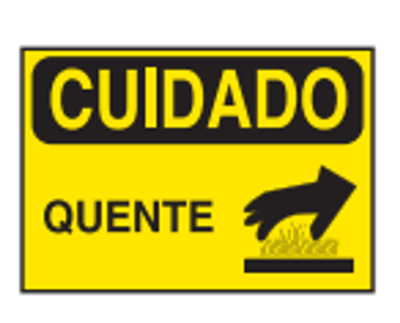 PLACA SINALIZACAO | MATERIAL: ALUMINIO | ACABAMENTO: VINIL AUTO ADESIVO | IDENTIFICACAO 1: CUIDADO | IDENTIFICACAO 2: QUENTE | CORES: AMARELA/PRETA | IMPRESSAO: PRETA | DIMENSOES: 350X250MM | MARCA: BRADY | REFERENCIA: C1141F