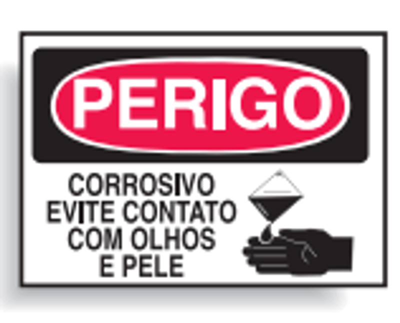 PLACA SINALIZACAO | MATERIAL: POLICLORETO POLIVINILA (PVC) | ACABAMENTO: VINIL AUTO ADESIVO | IDENTIFICACAO 1: PERIGO | IDENTIFICACAO 2: CORROSIVO EVITE CONTATO COM OLHO E PELE | CORES: BRANCO/VERMELHO/PRETO | IMPRESSAO: PRETA | DIMENSOES: 250X180MM | MARCA: BRADY | REFERENCIA: C1066B
