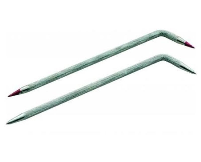 Aço Especial. Acabamento zincado brilhante. Indicado para marcações em peças e superfícies mais rígidas. Ponta curva: 60º. Ref. 745 CW - 2, possui ponta de wídia. Dicas de segurança: " Respeite as normas profissionais de segurança e o uso dos EPIs. " Não exponha o riscador curvo ao calor excessivo, para não comprometer as características do produto. " Não golpeie o riscador curvo. " Não altere a forma original do riscador curvo. " Não exponha / armazene o riscador curvo em ambientes ácidos, úmidos ou salinos. " Após o uso limpe visando prolongar a vida útil e garantir o bom funcionamento do riscador.