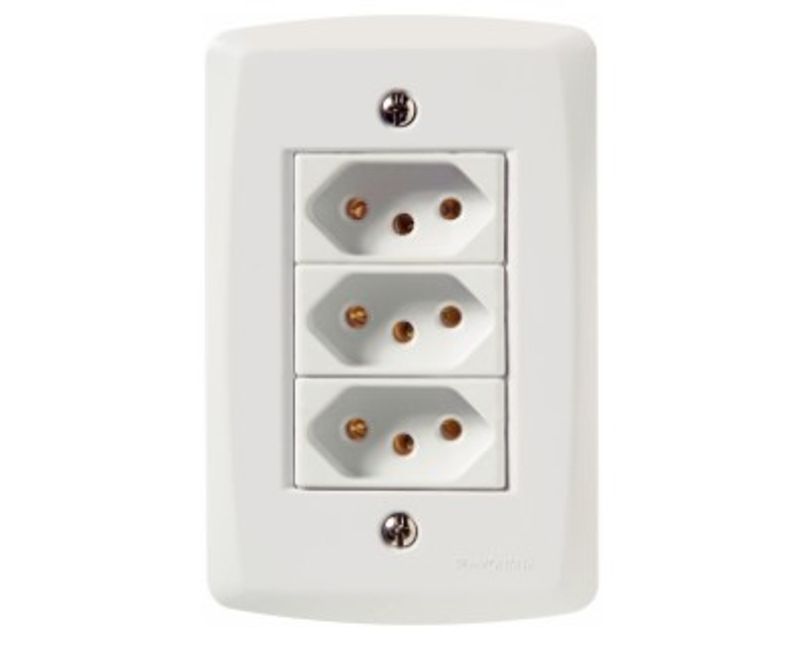TOMADA PREDIAL | INSTALACAO: EMBUTIR | QUANTIDADE MODULOS: 3 MODULOS | CONTATOS: PADRAO BRASIL | COR MODULOS: BRANCA | NUMERO POLOS: 2 POLOS + TERRA | CORRENTE MAXIMA: 10A | TENSAO MAXIMA: 250V | PLACA: COM PLACA 4X2" | COR PLACA: BRANCA | MARCA: TRAMONTINA | REFERENCIA: 57145076