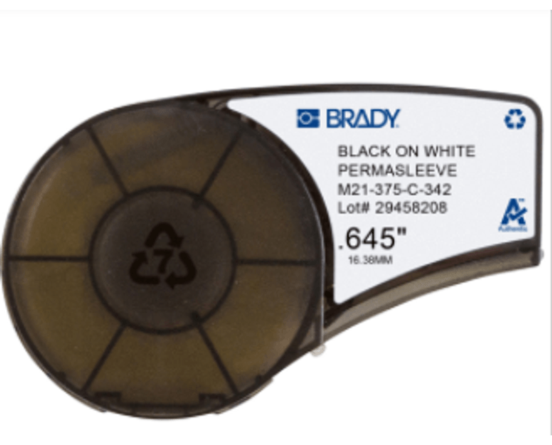 ETIQUETA MARCACAO | APLICACAO: IDENTIFICACAO GERAL | MATERIAL: COMPOSTO POLIOLEFINA | COR: BRANCA/PRETA | TAMANHO (MEDIDA): 16,3MM | FORNECIMENTO: ROLO 2,1M | MODELO: PERMASLEEVE | MARCA: BRADY | REFERENCIA: M21375C342