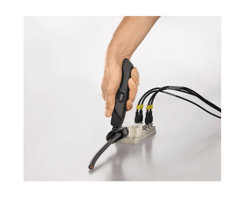 O alicate de prensa cabo Flecafix1124 é a solução perfeita para quem procura um produto de qualidade, durável e de fácil manuseio. Desenvolvido pela renomada marca Weidmuller Conexel, este alicate é fabricado em aço cromo vanádio com tratamento fosfatizado, o que confere resistência e durabilidade ao produto. Com comprimento total de 190 mm, o Flecafix1124 oferece capacidade de prensagem em cabos de 11 a 24 mm de diâmetro, possibilitando uma ampla variedade de aplicações.