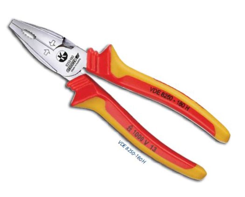 ALICATE UNIVERSAL | MATERIAL: ACO LIGA | TRATAMENTO SUPERFICIAL: NIQUELADO CROMADO | CABO: PLASTIFICADO | ISOLACAO 1000V: COM ISOLACAO 1000V | CORTE PARA ARAME: COM CORTE PARA ARAME | COMPRIMENTO: 7 " | MARCA: GEDORE | MODELO: VDE 8250 H | REF: VDE8250180H