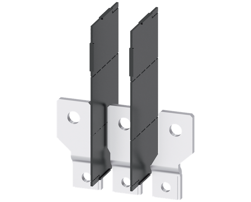 ALARGAMENTO DE CONEXÃO LADO FRONTAL 3 PEÇAS ACESSÓRIOS PARA: 3VA1 250 TÉCNICA DE LIGAÇÃO PARA DISJUNTOR COMPACTO 3VA. A TÉCNICA DE LIGAÇÃO DO DISJUNTOR COMPACTO 3VA PERMITE A COLOCAÇÃO EM FUNCIONAMENTO CÓMODA E SEM COMPLICAÇÕES DO DISJUNTOR COMPACTO 3VA, EM CONFORMIDADE COM OS REQUISITOS DE INSTALAÇÃO.