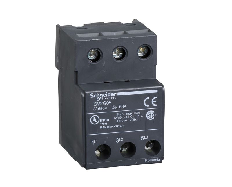 GV2G05, bloco de terminais para fornecimento a um ou mais GV2 da linha Linergy FT da Schneider Electric. Conjuntos de barramento G para alimentação, tripolar e com grau de proteção IP20, ou seja, protegido contra objetos sólidos.. GV2G05, bloco de terminais para fornecimento a um ou mais GV2ME e GV2P, tripolar e com grau de proteção IP20, ou seja, protegido contra objetos sólidos.