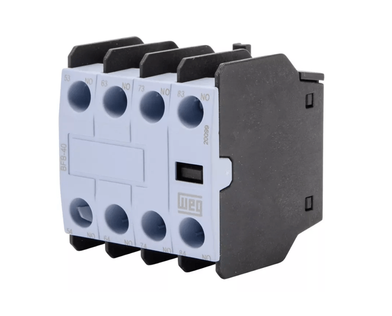 O bloco de contato auxiliar BFB04 da WEG é uma solução eficiente para auxiliar seus contatos de relés e contatores elétricos. Com quatro contatos NF, o BFB04 é compatível com encaixe frontal, o que o torna uma opção prática e fácil de instalar.